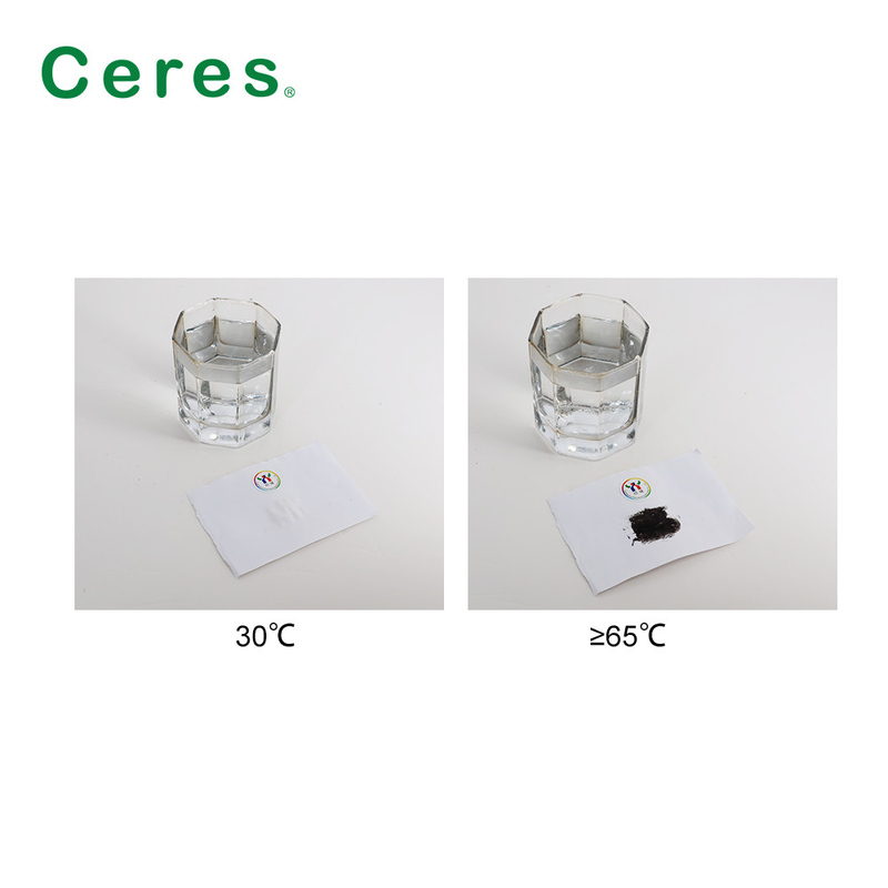 60/65/80/100/130 درجه | √ | بی رنگ تا قرمز / سبز / زرد / سیاه / آبی | جوهر حساس به دمای رنگ برگشت ناپذیر در ظاهر بی رنگ است اما پس از گرم شدن رنگ ها را نشان می دهد و پس از خنک شدن دوباره بی رنگ نمی شود | چاپ صفحه نمایش/ چاپ غبار/ چاپ فلکسو | |